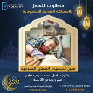 فنيين للعمل بجميع المهن الحرفية – البدوي لتوظيف بالخارج أحدث الوظائف, التشيد و البناء, الزراعة, المهن الحرفية