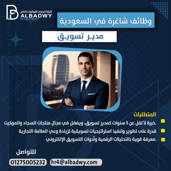 📢 فرصة عمل مميزة – مطلوب مدير تسويق بخبرة في قطاع السجاد والموكيت المسمى الوظيفي: مدير تسويق ... اقرأ أكثر