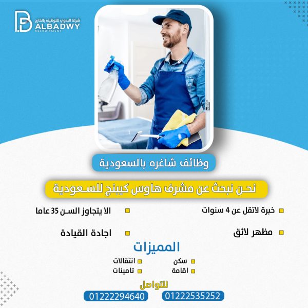 مشرف هاوس كيبنج للسعوديةAdmin2024-09-11شركة رائدة في المملكة العربية السعودية (الرياض) تعلن عن حاجتها لتوظيف مشرف هاوس كيبنج وفقاً للشروط التالية: ... اقرأ أكثر