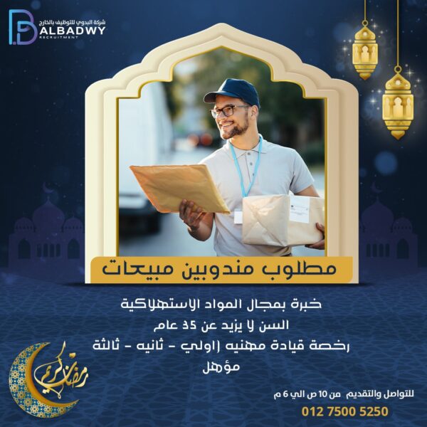 مندوب مبيعات – البدوي للتوظيف بالخارجBasem2023-03-18مطلوب مندوبين مبيعات للعمل بكبري شركات بالسعودية الشروط :- - خبرة بمجال المواد الاستهلاكية - السن لا ... اقرأ أكثر