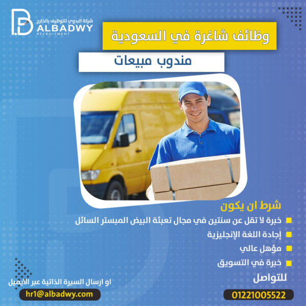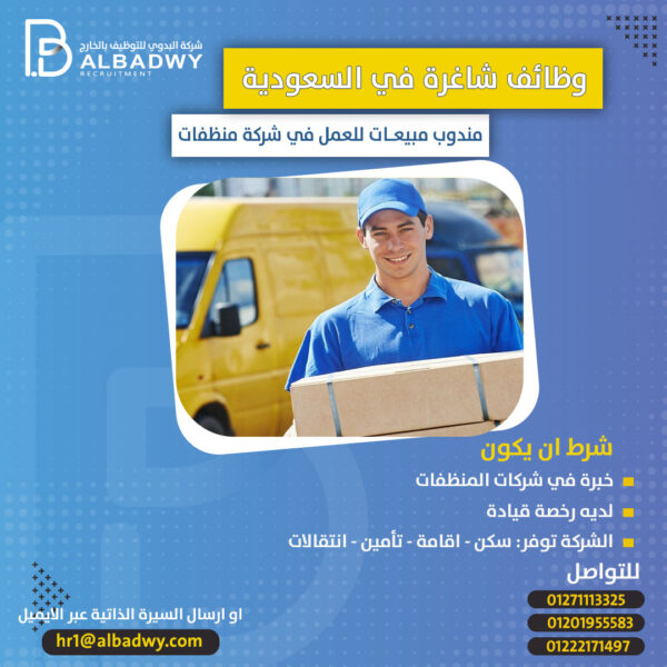 مندوب مبيعات – شركة البدوي للتوظيف بالخارجAdmin2023-11-07وظائف شاغرة في كبرى شركات المنظفات في السعودية مندوب مبيعات شرط: • خبرة سابقة في شركات المنظفات ... اقرأ أكثر