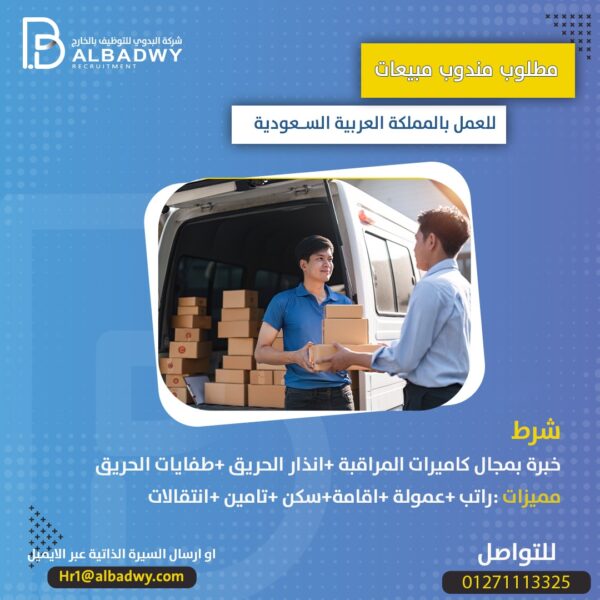 مندوب مبيعات – شركة البدوي للتوظيف بالخارجAdmin2023-06-15مطلوب للعمل بالمملكة العربية السعودية مندوب مبيعات الشروط :- خبره بمجال كاميرات المراقبه + انذار الحريق + ... اقرأ أكثر