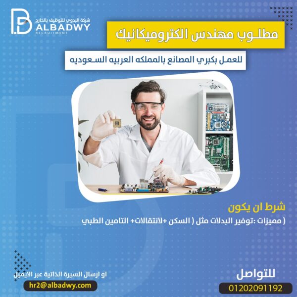 مهندس الكتروميكانيك – شركة البدوي للتوظيف بالخارجAdmin2023-05-30مطلوب للعمل بالمملكة العربية السعودية مهندس الكتروميكانيك الشروط :- خبره في العمل ك مهندس الكتروميكانيك المهام الوظيفية ... اقرأ أكثر