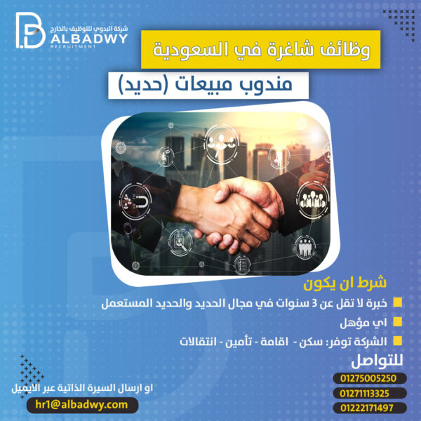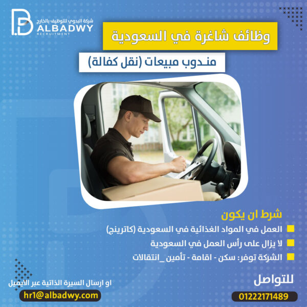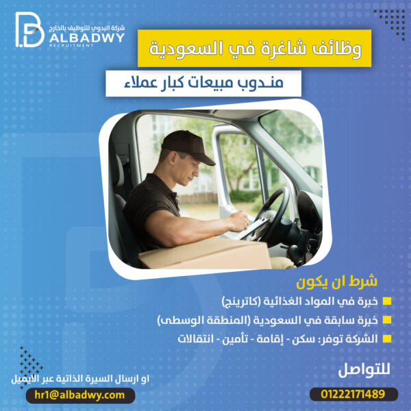 مندوب مبيعات – شركة البدوي للتوظيف بالخارجAdmin2024-01-02وظائف شاغرة في السعودية مندوب مبيعات كبار عملاء (كاترينج) شرط: • خبرة في المواد الغذائية • خبرة ... Read more