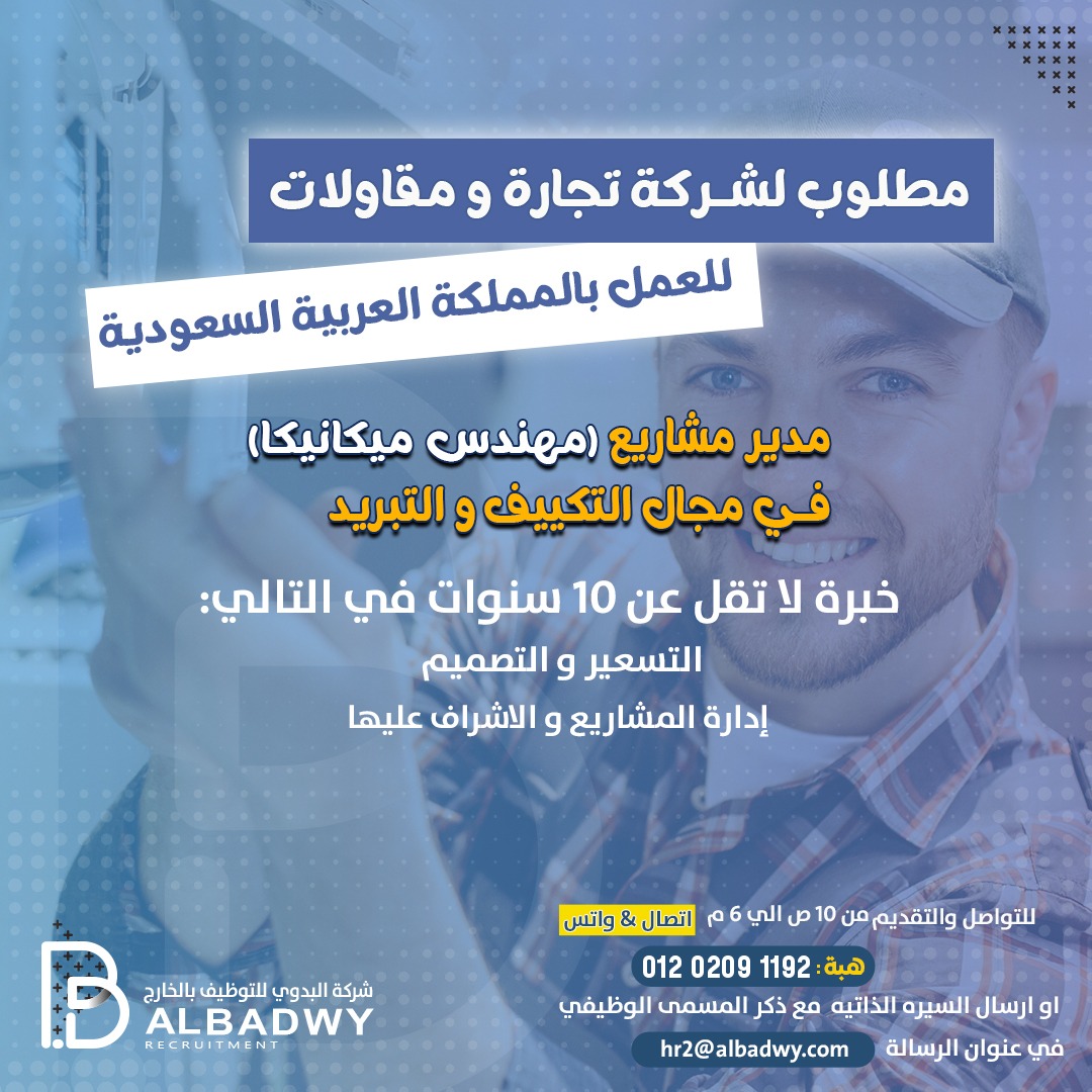 مدير مشاريع (مهندس ميكانيكا) في مجال التبريد والتكييف للعمل لدي كبري شركات المقاولات بالسعودية