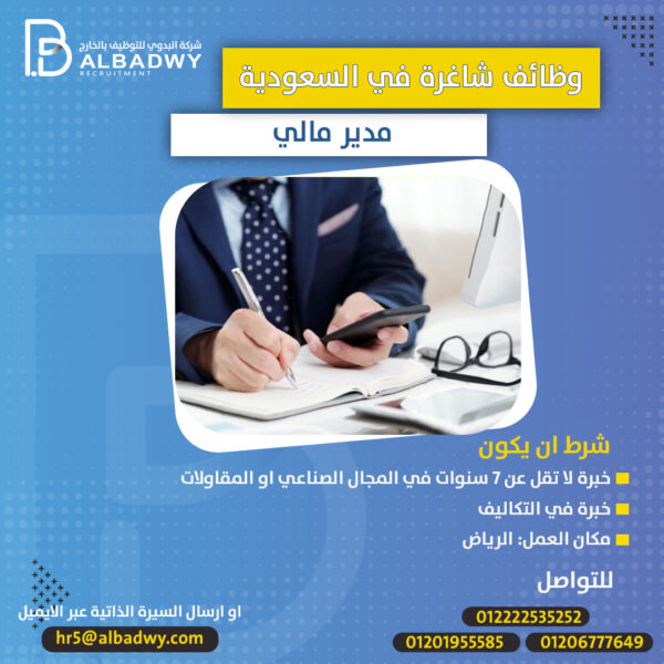 مدير مالي – شركة البدوي للتوظيف بالخارجAdmin2023-11-11وظائف شاغرة في السعودية مدير مالي شرط: • خبرة لا تقل عن 7 سنوات في المجال الصناعي ... اقرأ أكثر