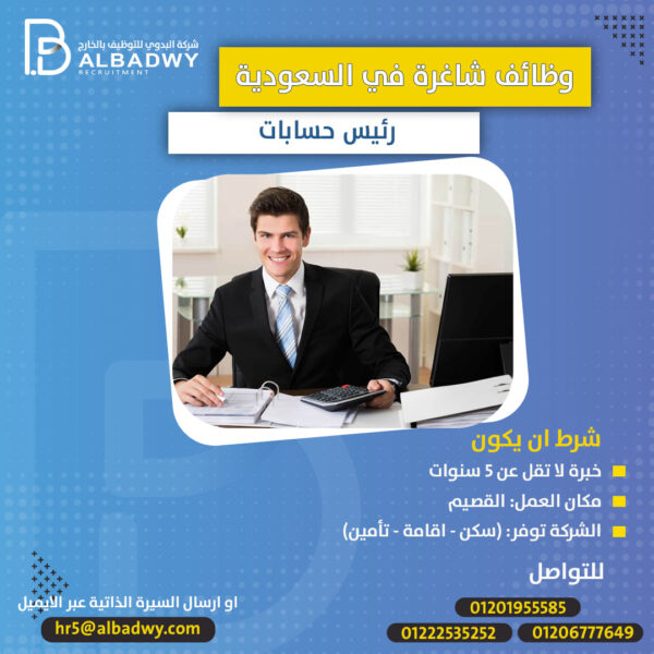 رئيس حسابات – شركة البدوي للتوظيف بالخارجAdmin2023-11-09وظائف شاغرة في السعودية رئيس حسابات شرط: • خبرة لا تقل عن 5 سنوات • مكان العمل ... اقرأ أكثر