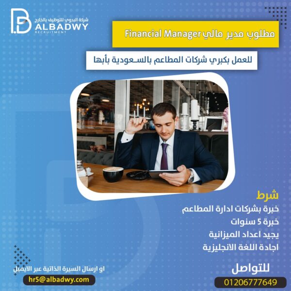 مدير مالي – شركة البدوي للتوظيف بالخارجAdmin2023-06-19مطلوب للعمل بالمملكة العربية السعودية مدير مالي الشروط :- خبره في شركات ادارة المطاعم خبره 5 سنوات ... اقرأ أكثر